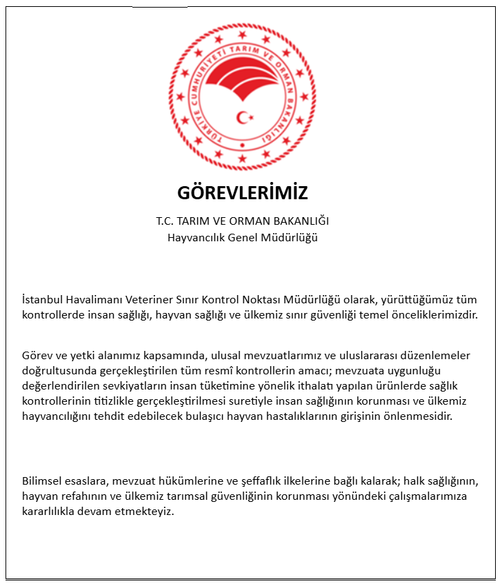 İSTANBUL HAVALİMANI VETERİNER SINIR KONTROL NOKTASI MÜDÜRLÜĞÜ